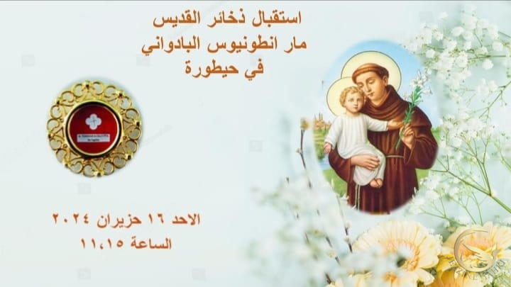 تتشرف رعية مار أنطونيوس البادواني في حيطورة بدعوتكم للمشاركة في احتفال العيد، الأحد 16 حزيران 2024: